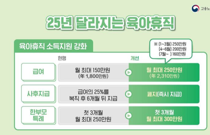 2025년부터 시행되는 육아휴직 급여 월 최대 250만 원 인상은 근로자와 가족 모두에게 큰 혜택을 제공할 것입니다. 이 제도를 충분히 활용하여 일과 가정의 균형을 맞추고, 보다 안정적인 육아 환경을 조성해보세요. 앞으로도 정부와 기업의 지속적인 노력이 더해져, 모든 근로자가 공평하게 일·가정을 병행할 수 있는 사회가 되기를 기대합니다.