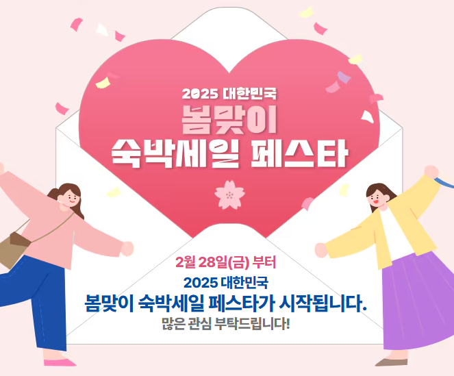 2025년 2월 28일부터 문화체육관광부와 한국관광공사가 공동 주최하는 '대한민국 숙박세일 페스타'가 시작됩니다. 이번 행사는 국내 관광 활성화와 내수 진작을 목표로 하며, 특히 비수도권 지역의 숙박 수요를 촉진하기 위해 기획되었습니다.