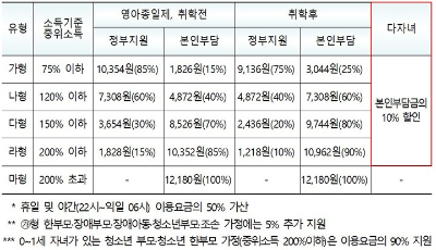 ✔ 소득 기준: 중위소득 150% 이하 가구(정부지원금 차등 적용)