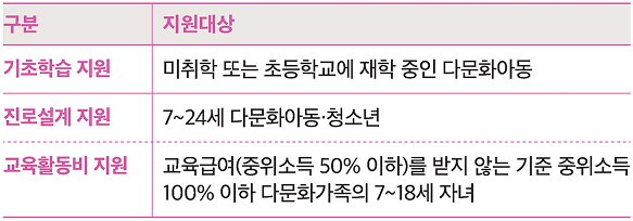 | 다문화가족 자녀 | 초등학교 3학년 ~ 고등학교 3학년 |